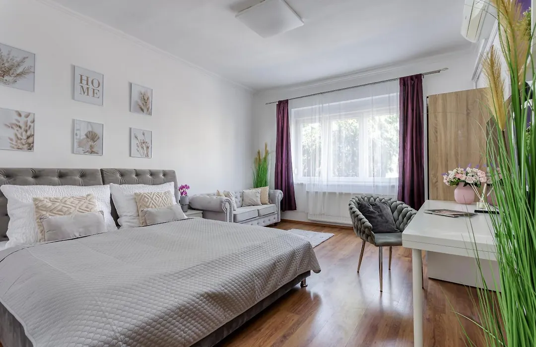 Die Ferienwohnung B2 Big King verfügt über eine voll ausgestattete Küche für Selbstversorger und bietet seinen Gästen einen Essbereich, um ihre Mahlzeiten zu genießen. Die nächstgelegene Bushaltestelle Telepes utca ist in der Nähe von der Unterkunft.